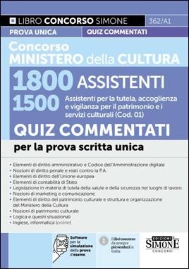 Concorso Ministero della Cultura 1800 Assistenti – 1500 Assistenti per la tutela, accoglienza e vigilanza per il patrimonio e i servizi culturali (Cod. 01) – Quiz Commentati