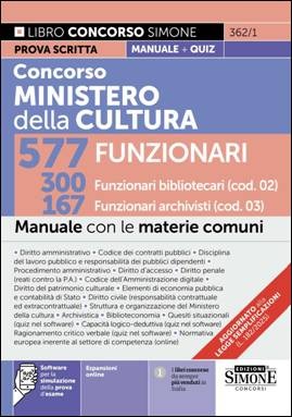 Concorso Ministero della Cultura 577 Funzionari – 300 Funzionari bibliotecari (cod. 02) 167 Funzionari archivisti (cod. 03) – Manuale con le materie comuni